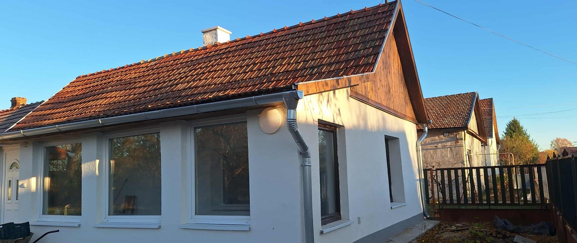 1. tető javítás, új megerősített gerendákkal, cserép tetőfedéssel,