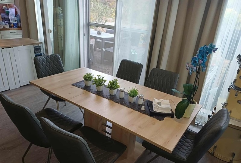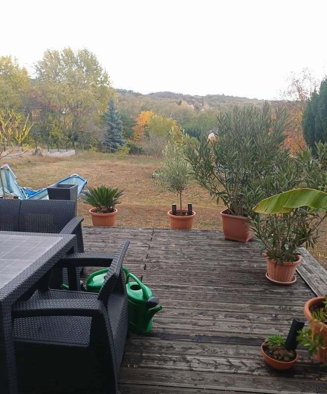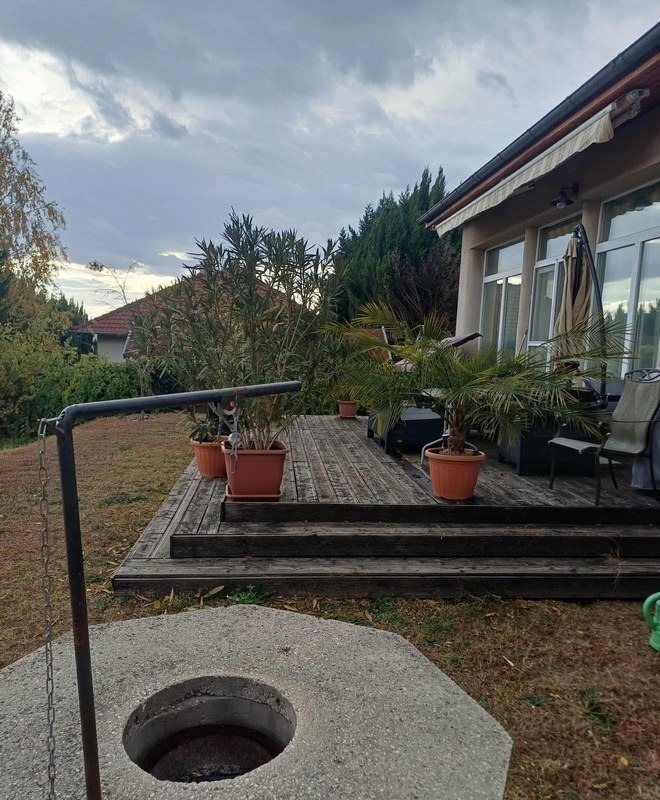 -terasz, mely felett egy kioltható, szélérzékelős árnyékoló lett felszerelve